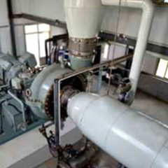 EGV系列水蒸氣離心壓縮機(jī)適用于MVR蒸發(fā)系統(tǒng)中,廣泛應(yīng)用于化學(xué)工業(yè)(蒸發(fā)、結(jié)晶、提純、濃縮)、廢水處理(含鹽廢水、含重金屬廢水等)、制藥(維生素等)、食品、添加劑工業(yè)(味精、大豆、蛋白質(zhì)乳液的蒸發(fā))、飲料工業(yè)(牛奶,果汁,乳清,糖溶液的蒸發(fā))等。 屬于單級(jí)、高速、單懸臂結(jié)構(gòu),壓縮機(jī)軸端密封采用碳環(huán)密封。該壓縮機(jī)葉輪和蝸殼安裝在高速齒輪箱上,與齒輪箱成為整體,由電機(jī)驅(qū)動(dòng)。機(jī)型涵蓋以下共計(jì)16個(gè)機(jī)型:28/31/35/40/45/50/56/63/71/80/90/100/112/125/140/160。采用系列化設(shè)計(jì)及高效的三元流開式葉輪,機(jī)殼采用鑄不銹鋼整體鑄造。 壓縮機(jī)為整體撬裝結(jié)構(gòu),單層布置,軸向進(jìn)氣,結(jié)構(gòu)緊湊,占地面積小,安裝周期短,易于維修,占用資源較少,便于安裝找正、維護(hù)。 油站兼具底座功能,潤滑系統(tǒng)整體撬裝于底座上,節(jié)約管路、專用底座等成本;采用方便拆卸、維護(hù)的葉輪連接方式;帶有盤車結(jié)構(gòu),方便保養(yǎng)。該壓縮機(jī)可采用進(jìn)口導(dǎo)葉調(diào)節(jié)方式,滿足較寬的流量變化工況,調(diào)節(jié)范圍寬,達(dá)75%~105%。 該系列壓縮機(jī)采用成熟可靠的模型級(jí)和先進(jìn)的氣動(dòng)計(jì)算程序,壓縮機(jī)效率可達(dá)87%,經(jīng)機(jī)組現(xiàn)場運(yùn)行驗(yàn)證和評(píng)估,達(dá)到了國際先進(jìn)水平。